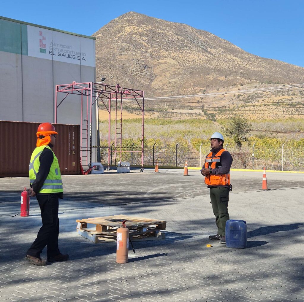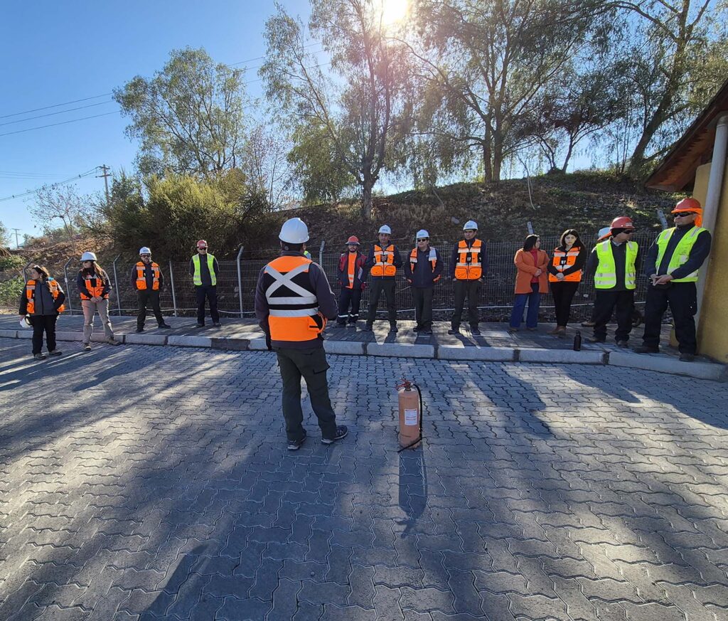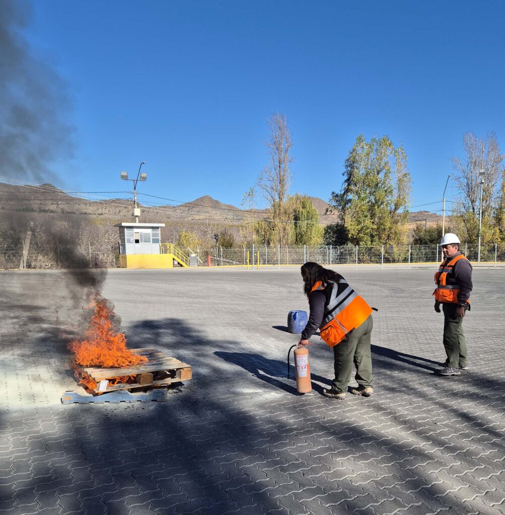 La primera estuvo enfocada en el uso y manejo de extintores, donde participaron trabajadores de todas las áreas, incluyendo Administración y Operaciones. La actividad combinó teoría y práctica, incorporando simulaciones en terreno con la extinción de focos de fuego en espacios controlados. Los participantes reforzaron conocimientos sobre los distintos tipos de fuego, los equipos de protección personal adecuados y las características de cada tipo de extintor. Este entrenamiento práctico permite que, en caso de una emergencia real, el personal esté preparado para actuar con rapidez y seguridad, minimizando riesgos y asegurando la continuidad de las operaciones.